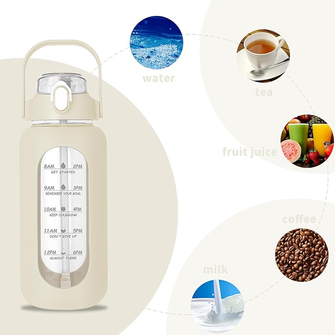 64oz Glass Water Bottle with Straw - Half Gallon Large Motivational Water Bottle with Silicone Sleeve Time Marker, Ideal for Gym, Sports, Workouts, Daily