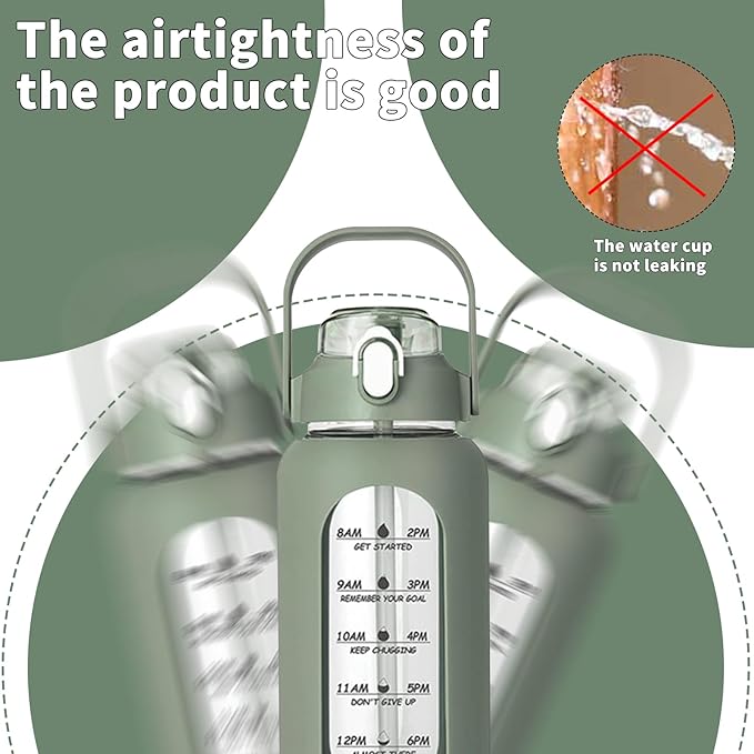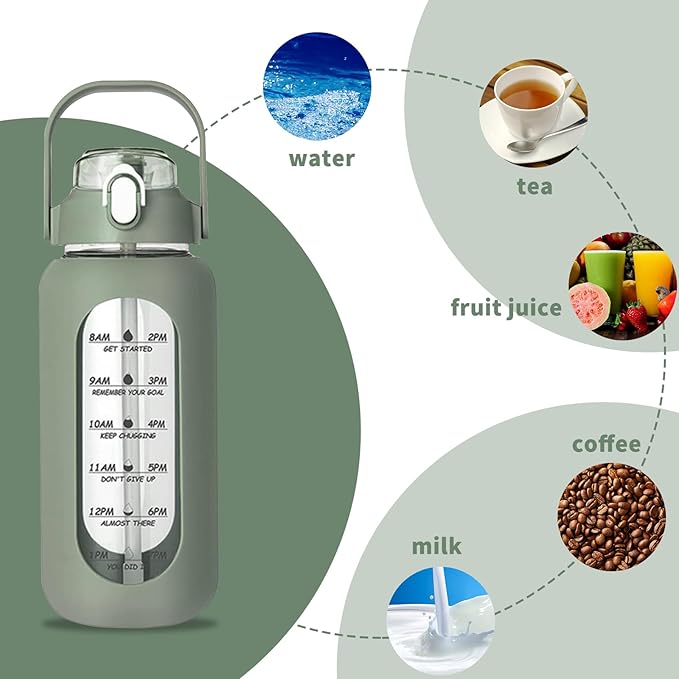 - 【Material Design】These 64oz glass water bottles, designed for Water Bottles category, are made of high-quality borosilicate glass. They are BPA-free, dishwasher safe, and come with detachable straw, a leakproof lid with handle, a fashionable silicone sleeve, and a convenient cup brush for easy cleaning