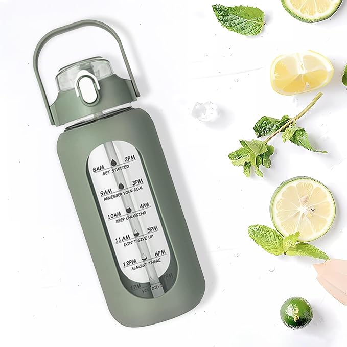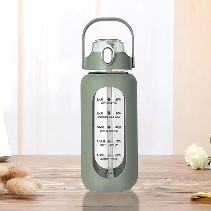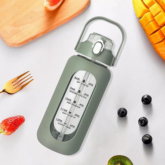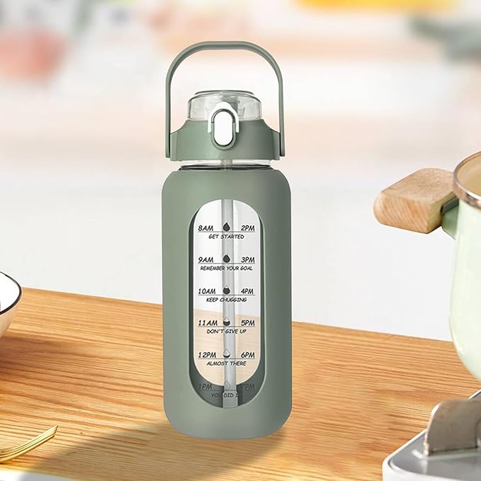 64oz Glass Water Bottle with Straw - Half Gallon Large Motivational Water Bottle with Silicone Sleeve Time Marker, Ideal for Gym, Sports, Workouts, Daily