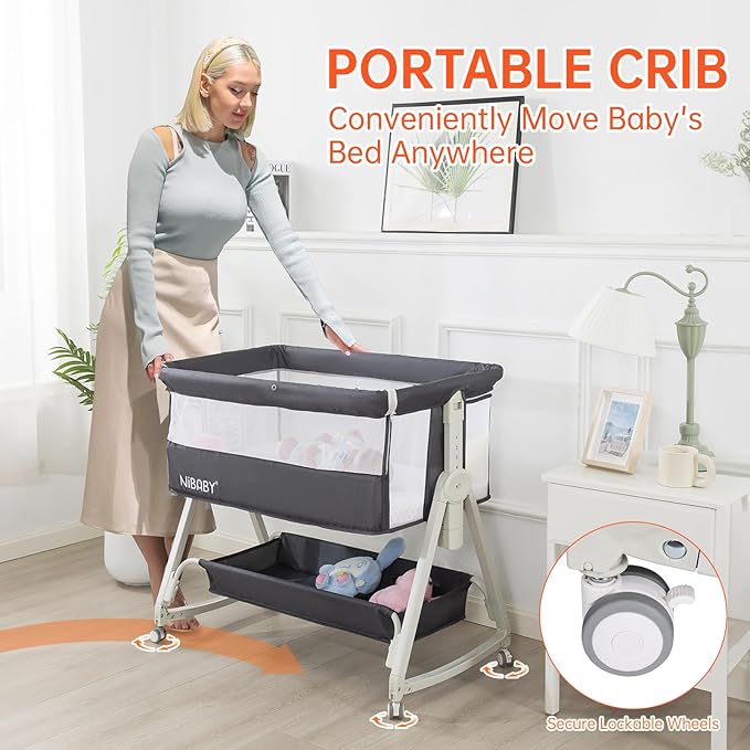 - 【3-in-1 Functionality】Our bedside baby bassinet features an integrated three-in-one design to meet the diverse needs and growth stages of babies. Beyond serving as a bedside bassinet, it can easily transform into a standalone crib and a manual rocker; it also functions as a bedside nursing bed, placed next to your bed for intimate co-sleeping with your baby, providing a safe and comfortable sleeping environment. This multifunctionality eliminates the need for parents to purchase different products as their baby grows, saving space and budget for the family.