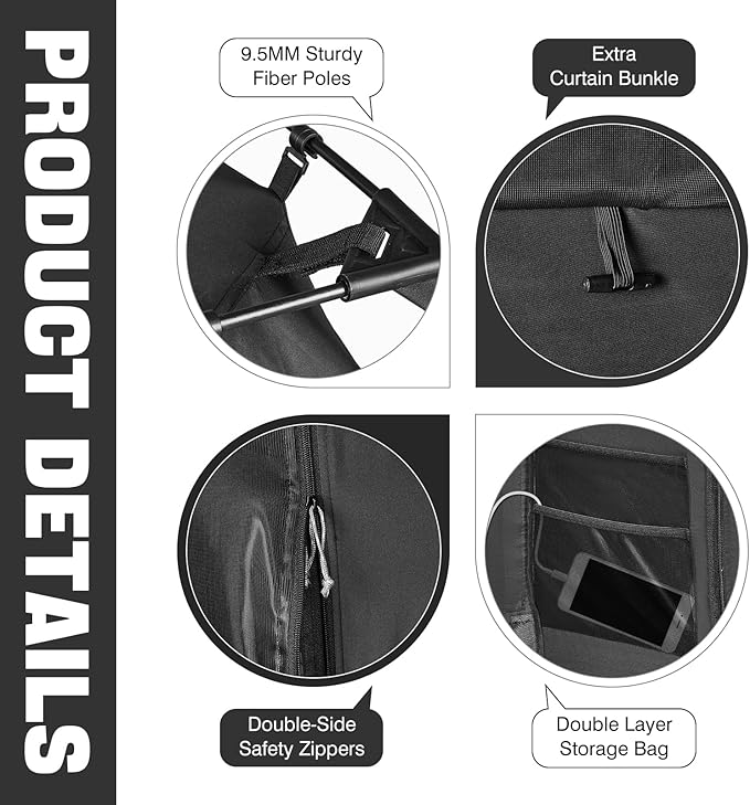 - RECTANGULAR PATENTED DESIGN: BORNA bed tent is designed with unique inserted poles, compared to pop-up tents on the market, we use 8mm fiber poles to create this through pole blackout tent, which won't collapse or bend, making it more stable and durable. The rectangular frame structure is also very spacious, making it an ideal choice for you.