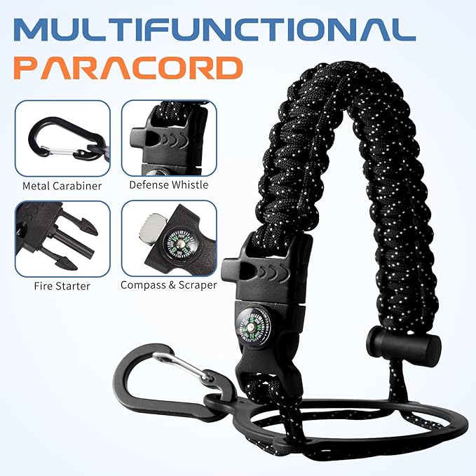 - PROTECTIVE BOOT & SURVIVAL PARACORD: Upgraded silicone boots prevent shattering and cracking when insulated water bottle 128 oz accidental dropped. Humanized paracord handle for water bottles with compass, safety ring, carabiner, flint fire starter & whistle to be a perfect survival kit for adventure. Both design in individual styles to match the color of water canteen, stylish and practical in your daily use
