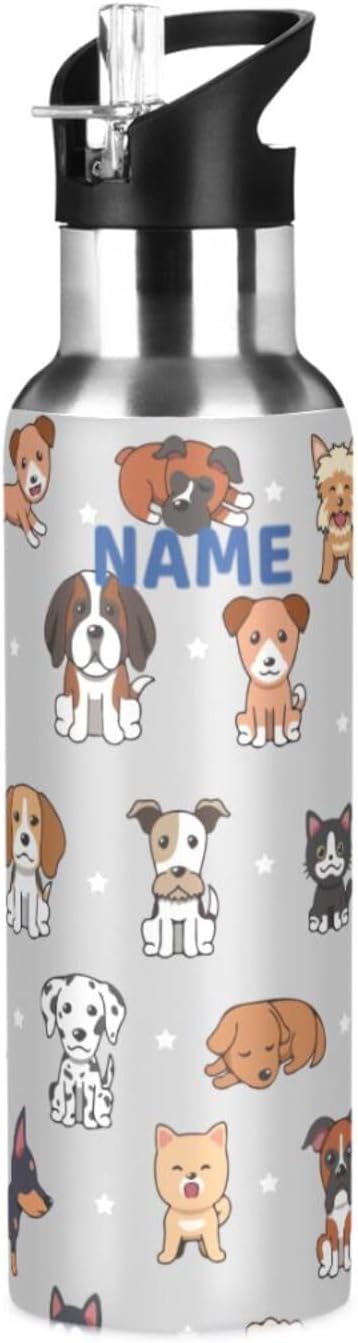 cute dog Stainless Steel Water Bottle with Straw Lid - 20 Oz Sports Insulated Water Bottle Thermos for Sport Gym Outdoor Travel School (DZ004)