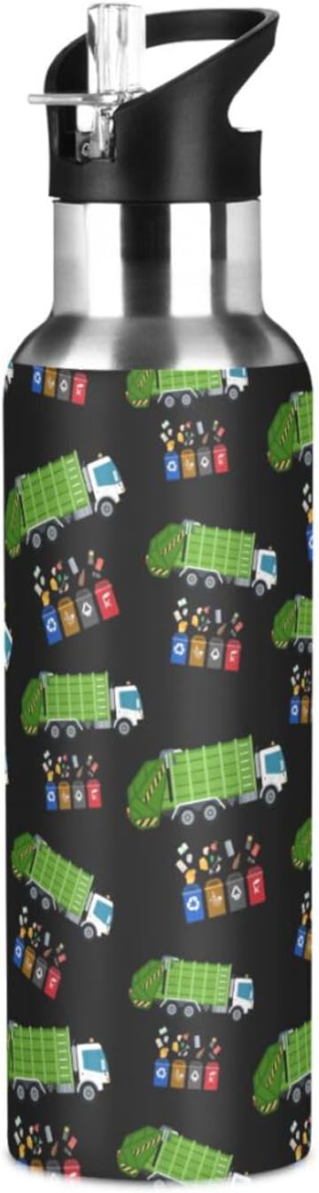 Garbage Truck Trash Recycling Stainless Steel Water Bottle with Straw Lid - 20 Oz Sports Insulated Water Bottle Thermos for Sport Gym Outdoor Travel School (DZ008)