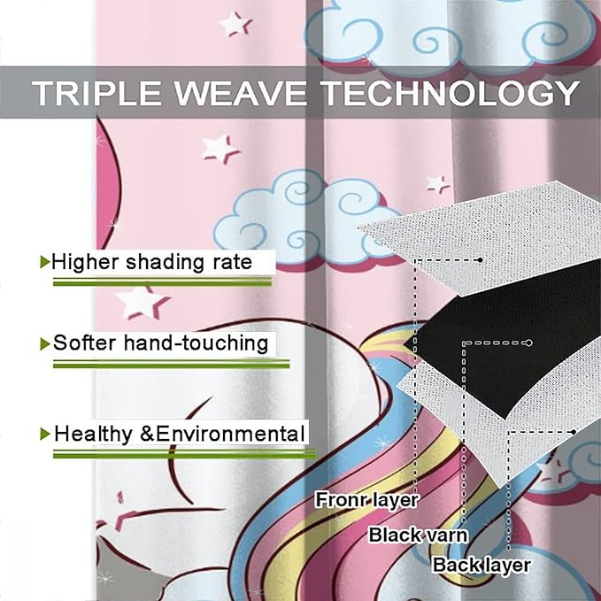 Unicorn Curtain for Kids Bedroom,Pink Cartoon Rainbow Darkening Curtains Decor Sliding Curtains Decorative Curtains for Girls Boys Baby Room,Living Room Decoration 72x63inch