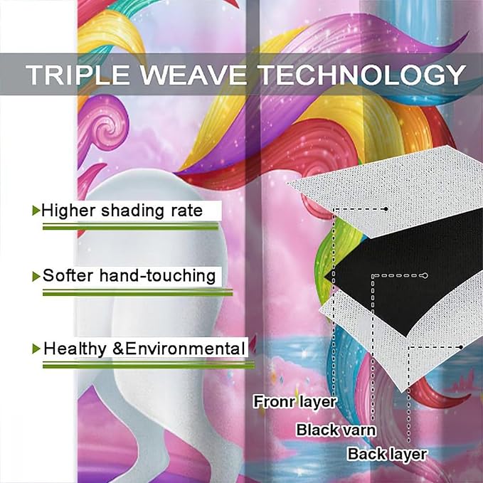 Unicorn Curtains Pink Kids Cartoon Room Darkening Decor Curtains Boys Girls Baby Room Decor Curtains Living Room Kitchen Decor 84x84 Inch 2 Panels