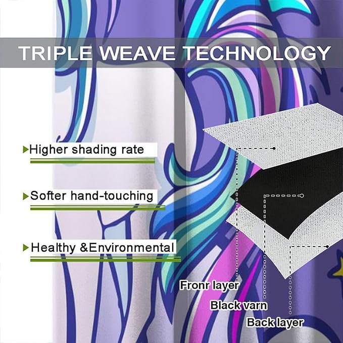 Kids Unicorn Curtains Purple Cartoon Rainbow Cartoon Room Blackout Curtains Boys Girls Baby Room Decor Curtains Living Room Decor 42x63 Inch 2 Panels