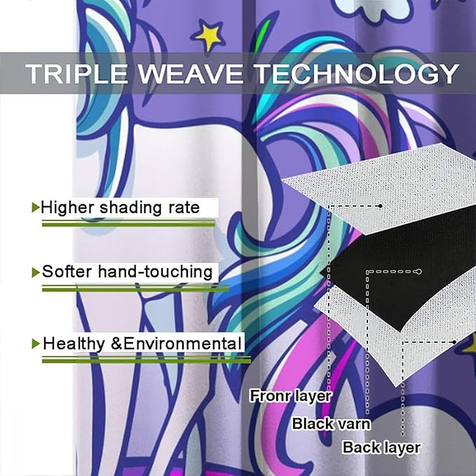 Kids Unicorn Curtains Purple Cartoon Rainbow Cartoon Room Blackout Curtains Boys Girls Baby Room Decor Curtains Living Room Decor 55x63 Inch 2 Panels