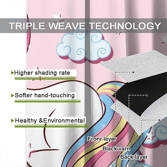 Unicorn Curtain for Kids Bedroom,Pink Cartoon Rainbow Darkening Curtains Decor Sliding Curtains Decorative Curtains for Girls Boys Baby Room,Living Room Decoration 55x63inch