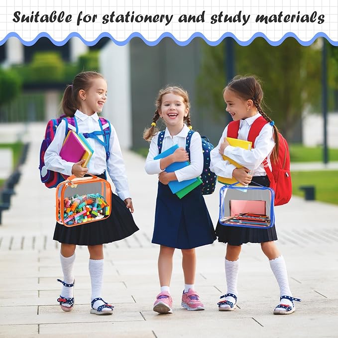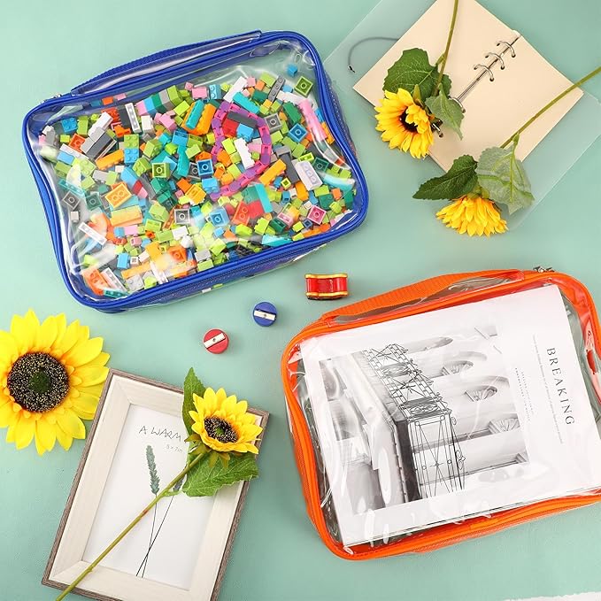 Sanwuta 3 Packs Toy Storage Bags with Zipper, Clear PVC Organizing Bags, Waterproof Toy Bags for Board Games, Building Blocks, Toys and Kids Books (Red, Blue, Orange,12.6 x 9 x 2.36 Inch)