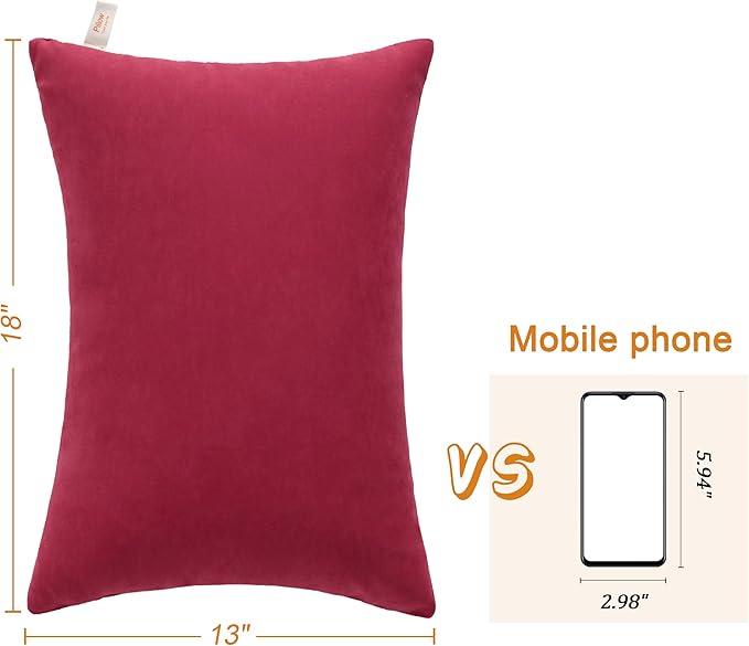 BEDSUM 2 Pack Pillows, 13"x18" Microfiber Pillows for Travel, Pets, Soft and Machine Washable Small Pillows for Neck, Wrist, and Knee Comfort, Red
