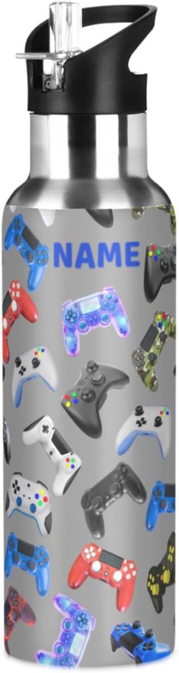 Gamer Gaming Weapon Gamepad Stainless Steel Water Bottle with Straw Lid - 20 Oz Sports Insulated Water Bottle Thermos for Sport Gym Outdoor Travel School