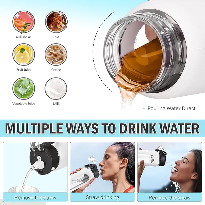 - WHAT'S IN THE BOX - The Drinking Bottle Set comes with a 24 oz water bottle covered with a silicone protective sleeve, 1 straw lid with locking, 2 tritan built-in straws and 1 straw cleaning brush. The locking lid allows for convenient one-handed drinking or pouring. One touch flip lid keeps drink surface covered and clean. These daily water intake bottles are ideal for home, office, school, sports, biking, hiking, gym, travel, or on the go, and also car cup and gym equiptment friendly.