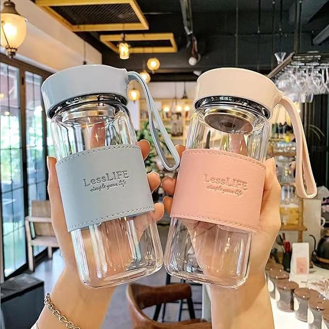 - 【Design features】: The glass water bottle shape design is unique and simple style, which is very suitable for gifts, leisure and entertainment or office. The cups are available in 4 colors to suit your needs.