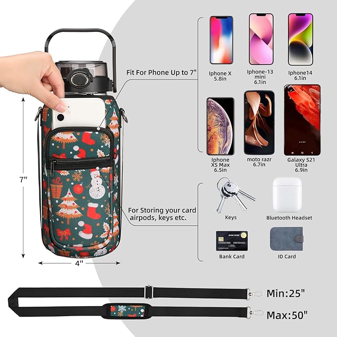 - Glass Water Bottle With Sleeve and Strap: This glass water bottle with straw is designed with high quality 5mm Neoprene sleeve to protect water bottle from slight bumps and absorb sweat to avoid dripping on table or seat. It’s an all-in-one water tracker bottle, water bottle sleeve with 2 pockets to storage phone, card,airpods, key and motivational water bottle with comfortable padded shoulder strap & wrist strap for hands free carrying. You can adjust the strap ensure a snug fit