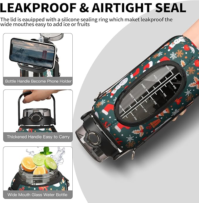64oz Glass Water Bottle with Straw and Sleeve Half Gallon Motivational Water Bottle with Time Marke and Strap 2L Leakproof Borosilicate Water Jug for Gym Outdoors Christmas Gifts for Women