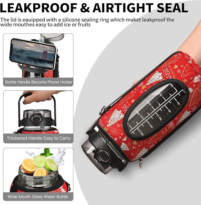 64 oz Glass Water Bottle with Straw and Sleeve Half Gallon Motivational Water Bottle with Time Marke and Strap 2L Leakproof Borosilicate Water Jug for Gym Outdoors for Women