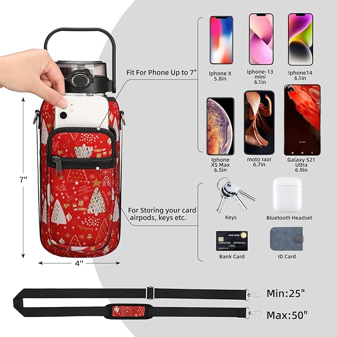 - Glass Water Bottle With Sleeve and Strap: This glass water bottle with straw is designed with high quality 5mm Neoprene sleeve to protect water bottle from slight bumps and absorb sweat to avoid dripping on table or seat. It’s an all-in-one water tracker bottle, water bottle sleeve with 2 pockets to storage phone, card,airpods, key and motivational water bottle with comfortable padded shoulder strap & wrist strap for hands free carrying. You can adjust the strap ensure a snug fit