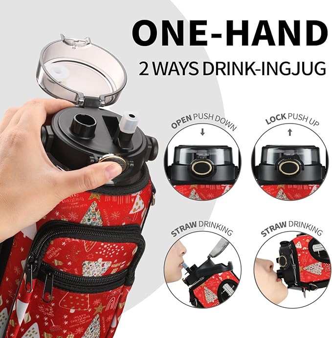 - Glass Water Bottle with Pop Up Lid : Our 42-64OZ glass water bottle with straw is designed with a pop up lid with silicone O-ring, secure lock & dust cover that ensures to be 100% leak-proof and dust-proof. This glass water bottle has two ways to drink water There's both a straw and a hole that can be drank from directly which is very convenient and fast