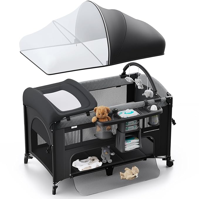 - Designed for Your Little One: Elevate your baby's experience with a detachable arched toy rack at the crib head, keeping them engaged. The fully enclosed, half-mesh, half-fabric mosquito net guarantees a tranquil sleep, shielding your little one from insects while allowing easy monitoring for parents. The bottom is carefully equipped with a spacious storage area for easy organization of baby's belongings