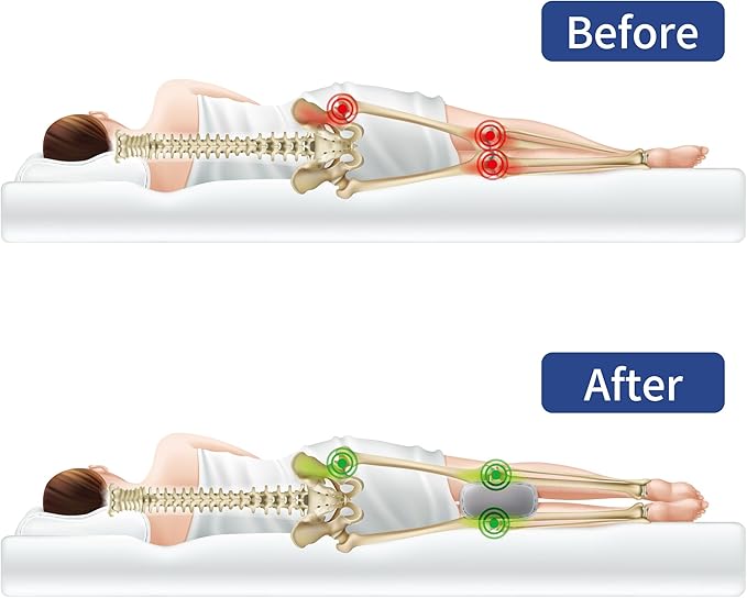 - 【Relaxing the Body for Sound Sleep 】This one is great as you can put it under your knees when on your back and then very easily shift it to between your knees when you roll over to your side. It's much easier and more versatile than the wedges that are made only for under your knees or between your knees.