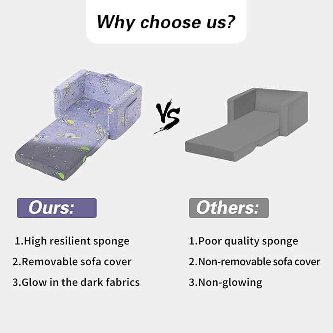 - 【Foldable Kids Sofa】: Children's sofa offer the flexibility to adapt to different situations. With a simple fold, they can effortlessly convert between a traditional sofa and a lounger, accommodating various seating preferences or transforming playtime into relaxation time.