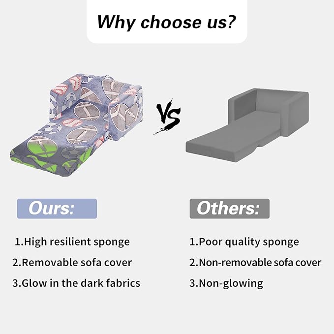 - 【Cartoon Pattern and Suitable for Any Environment】: The children's couch has a childlike pattern and emits light at night, just put the kids' sofa under bright lights or sunlight for 15-30 minutes. Whether it's placed in a living room, playroom, or bedroom, it blends seamlessly with the surroundings.