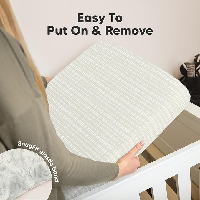 - Easy To Put On - Our fitted crib sheet uses SnugFit Tech, a smart fabric knit that allows the fabric to stretch when you are fitting or removing the crib sheets neutral from the toddler crib. No more struggling with rigid fabric!