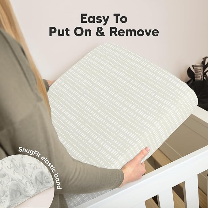 - Easy On, Easy Off - Our fitted mini crib sheet uses SnugFit Tech, a smart fabric knit that allows the fabric to stretch when you are fitting or removing the playard crib sheets neutral. No more struggling with rigid fabric!