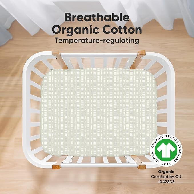 - Soft & Breathable - Made of GOTS organic cotton, the Soothe Mini Crib Sheets Fitted ensure maximum comfort for your baby during sleep time. Our breathable fitted pack n play sheet is suitable for all skin types, including the most delicate skin.