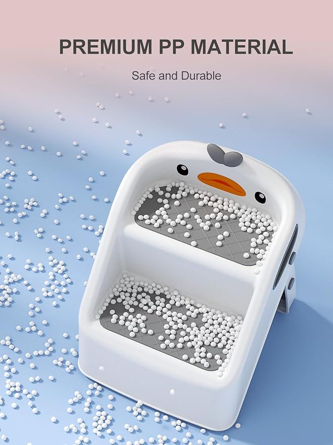 - Gift to Give Todder More Independence : The step stool for toddlers has rubber caps that keep it sturdy in place, and add non-skid pad to both steps to keep kids comfortably and safely. Also, the step stool for toddlers is light enough for your kids to drag around, easy to clean and doesn’t scuff your floors. As a welcoming gift for your family and friends kids.