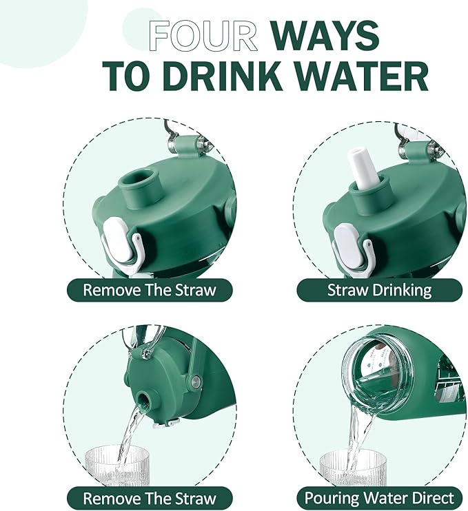 - ❤High-Quality Borosilicate Glass Bottle- This large motivationla water bottle is made of odorless, quality, borosilicate glass. Straw and lid are made of food-grade PP, BPA-free and eco-friendly.