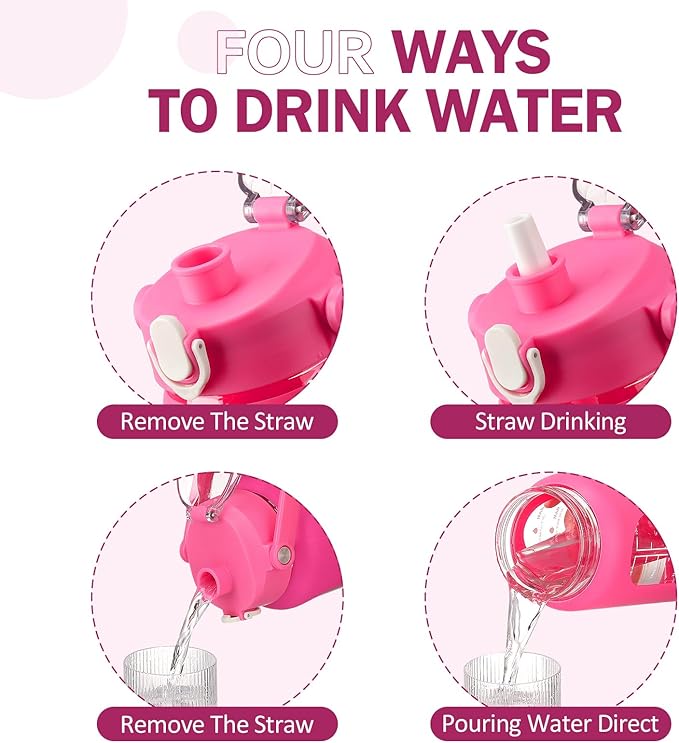 - ❤High-Quality Borosilicate Glass Bottle- This large motivationla water bottle is made of odorless, quality, borosilicate glass. Straw and lid are made of food-grade PP, BPA-free and eco-friendly.