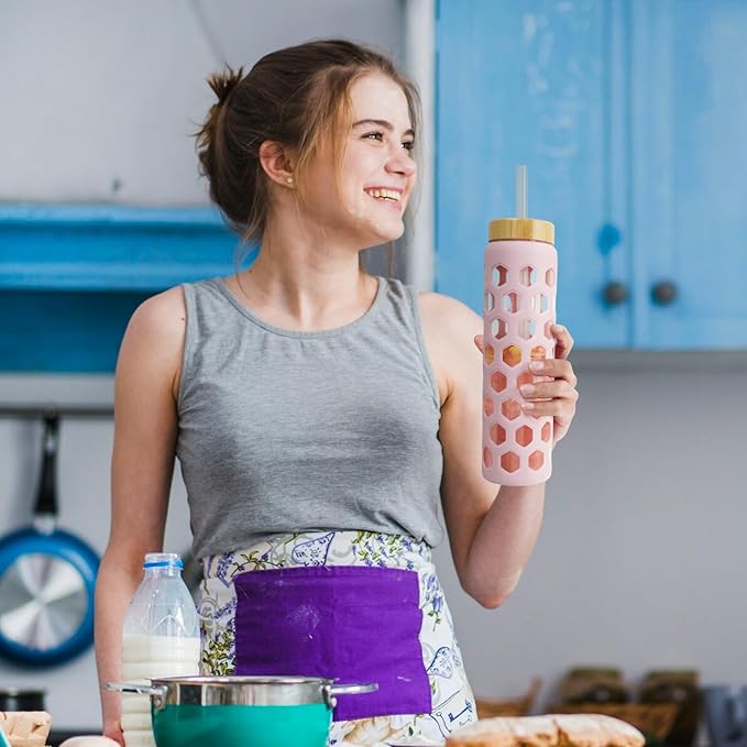 - 【Protective Sleeve】Cafezi 32-ounce glass water bottle with time markers, keeping water purified. This is a very convenient way to track water intake, stay hydrated, and maintain overall health