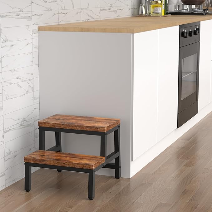 - Sturdy and Stable Structure: Crafted from solid wood and iron frame smooth surface, our adult wooden step stool offer excellent stability and support, with a maximum weight capacity of 500 lbs. per wood stool for long-lasting use