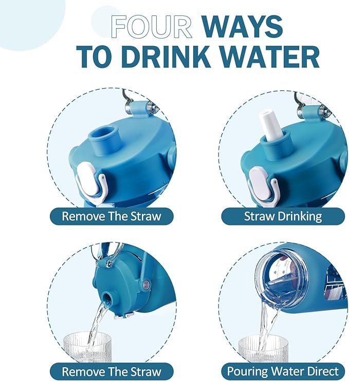 - ❤High-Quality Borosilicate Glass Bottle- This large motivationla water bottle is made of odorless, quality, borosilicate glass. Straw and lid are made of food-grade PP, BPA-free and eco-friendly.