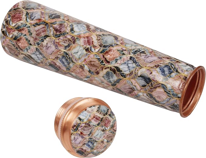 - PERFECT STYLE AND QUALITY : An Easy to use leak proof bottle. Carry confidently to the Gym, Yoga Class, Work and School, even upside down! For that extra style statement, chose a gorgeously enameled or etched pattern. The inside of the patterned styles are also pure copper - we care about your health. Easy to clean.