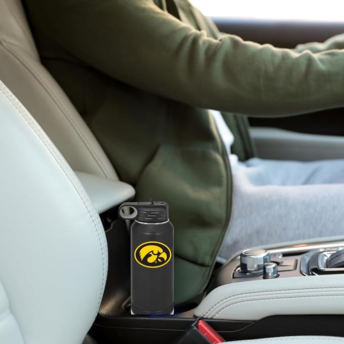 Game Day Outfitters University of Iowa 32oz Stainless Steel Double Walled Black Beverage Bottle with Flip Straw Spout - College Gear for Playoff Season – Show your Hawkeye Pride