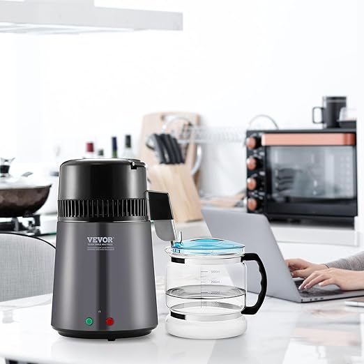 VEVOR Water Distiller, 4L 1.05 Gallon Pure Water Purifier Filter for Home Countertop, 750W Distilled Water Maker, Stainless Steel Interior Distiller Water Making Machine to Make Clean Water, Gray