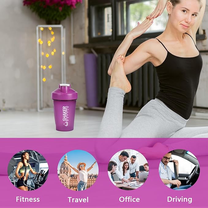 Shaker Bottle, 400ml Small Protein Shaker Cup with Mixing Ball for Smooth blending, Leak-Proof GYM Workout Water Bottles for protein& Smoothie Shake,Bpa Free (13oz / Purple)