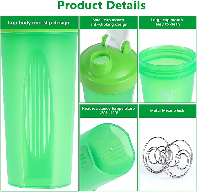 Shaker Bottle, 600ml Classical Protein Shaker Cup with Mixing Ball for Smooth blending, Leak-Proof GYM Workout Water Bottles for protein& Smoothie Shake,Bpa Free (20oz / Green)