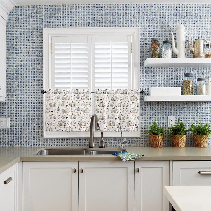 - Fall Kitchen Window Curtain Set for Winter Holiday Decorations: Short Window Curtains/ Set Half Curtains / Window Treatment Tiers With Valance Set For Small Windows in Cafe/ Living Room / Bedroom/ Nursery Room /Bathroom/Dining Room