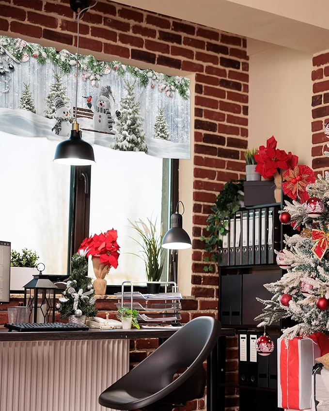 - Wide Use Window Valance: Can Be Used As Christmas Kitchen Valances for Windows,XMAS Window Valance Curtains For Living Room / Bedroom/ Nursery Room / Bathroom;Kitchen Window Curtains over Sink, Door Valances, Cafe Curtains.