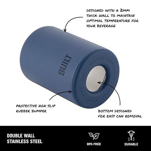 BUILT 12 Ounce Double Wall Stainless Steel K2 Can Chiller Pacific Blue