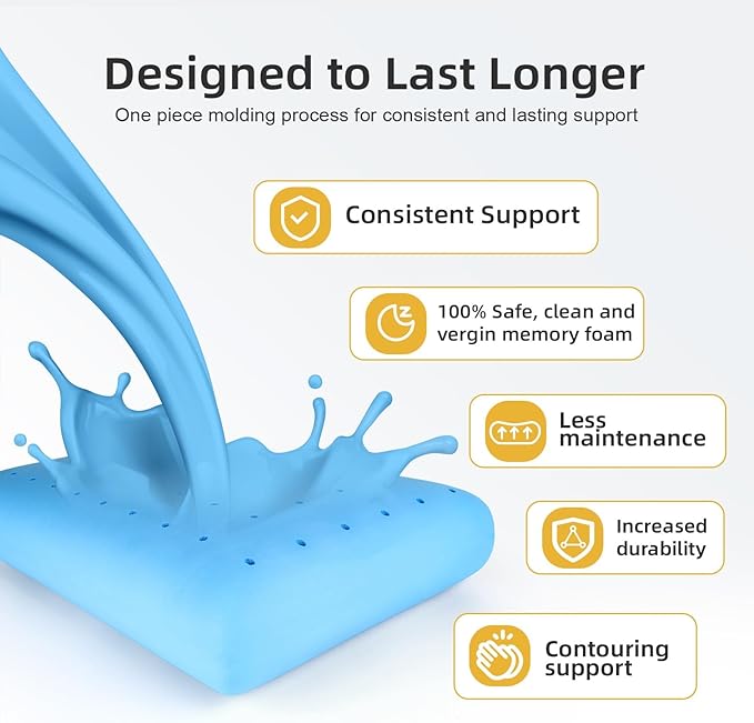 - 【Say Goodbye To Discomfort】 Made of high-density foam, cooling memory foam pillow offers a perfect blend of support and softness. Pillow for side sleepers provides ample support to keep your head and neck in alignment throughout the night, while still retaining its shape for maximum stability.