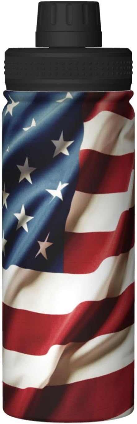 Cerburny Insulated Water Bottle Red USA Flag 18 oz Stainless Steel Bottles With Lid Leak Proof Gym Sport Water Jug For Men Women Adults