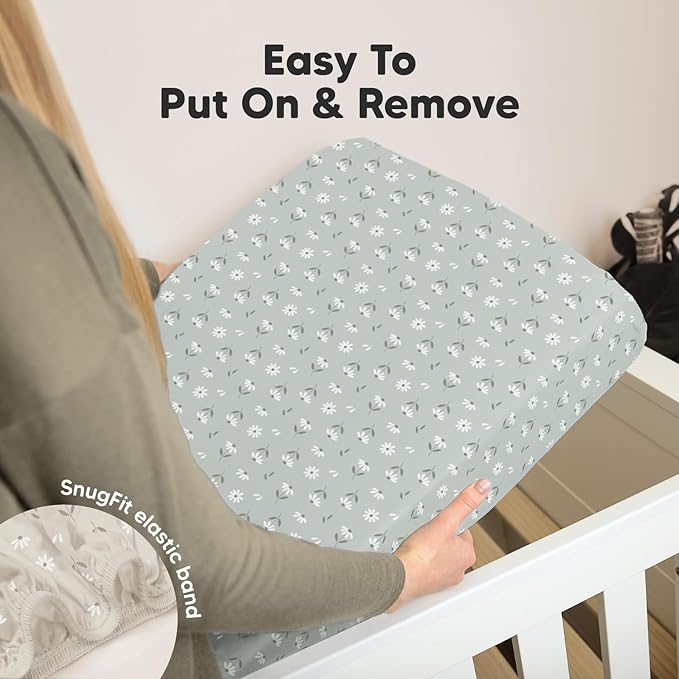 - Easy On, Easy Off - Our fitted mini crib sheet uses SnugFit Tech, a smart fabric knit that allows the fabric to stretch when you are fitting or removing the playard crib sheets neutral. No more struggling with rigid fabric!