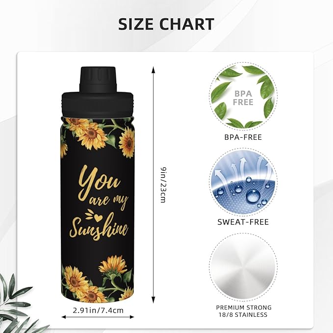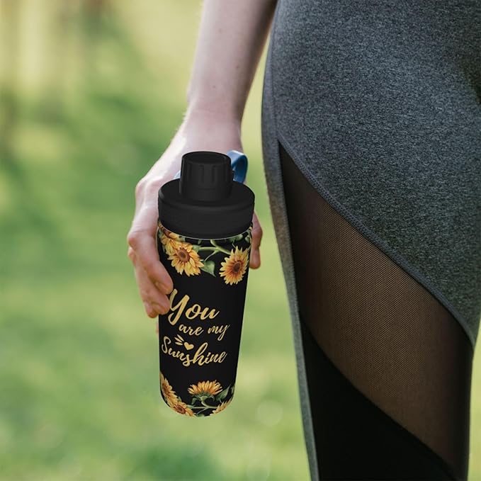 Cerburny Insulated Water Bottle You Are My Sunshine 18 oz Stainless Steel Bottles With Lid Leak Proof Gym Sport Water Jug For Women Friends