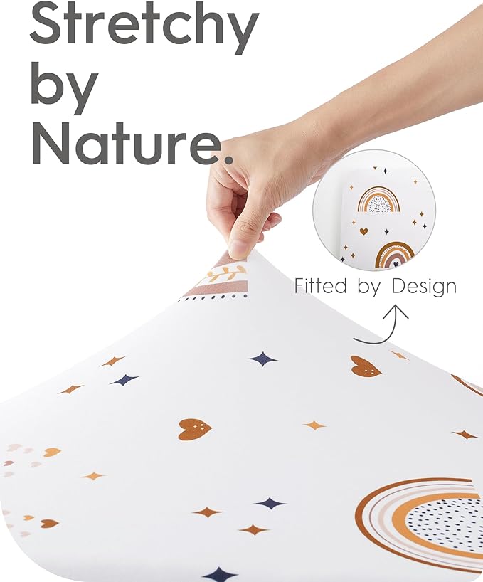 Pack N Play Sheets Fitted, TotBasic Ultra Soft Boho Rainbow Mini Crib Sheets, Premium Jersey Knit Pack and Play Sheets, Stretchy Neutral Play Yard Sheets for Pack and Play Mattress, 2 Pack