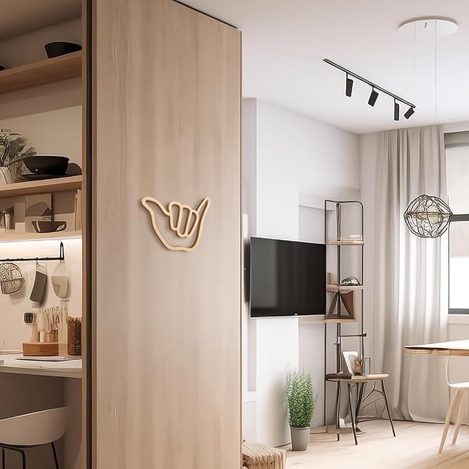 Wooden Wall Sign Hang Loose Sign Surfer Hand Sign Hand shape Wall Decor for Home Living Room Kitchen Bathroom